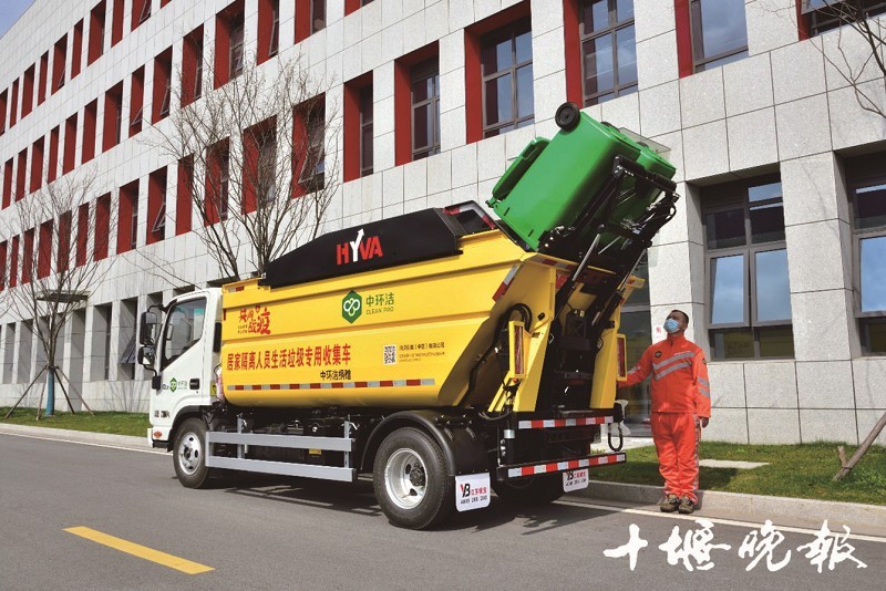 昨日上午,工作人員開始試用居家隔離人員生活垃圾專用收集車。